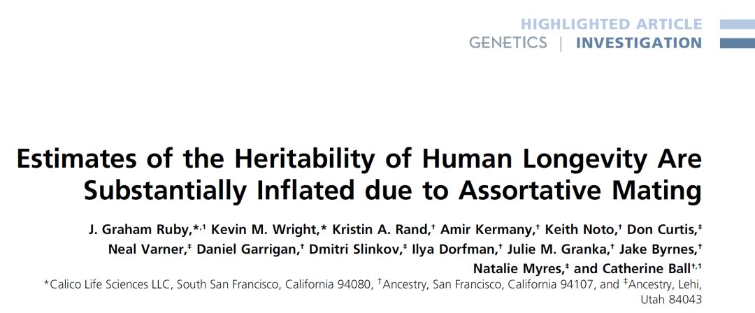 参考文献:J. Graham Ruby,Kevin M. Wright. Estimates of the Heritability of Human Longevity Are Substantially Inflated due to Assortative Ma