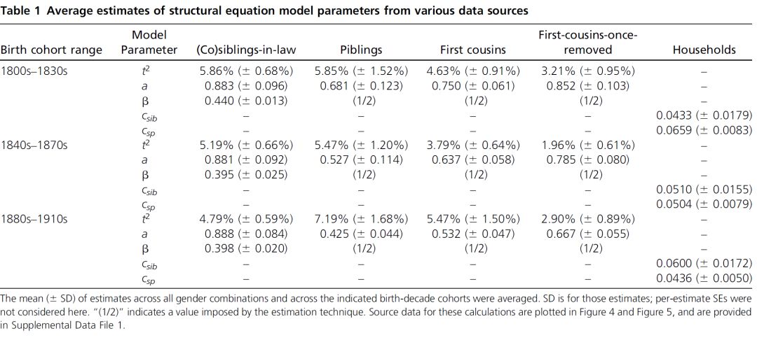 研究人员采用结合数学和统计建模的方法,重点关注出生于 19 世纪和 20 世纪初的亲属。最终,他们发现兄弟姐妹和第一代堂兄弟的遗传性大小与先前的研究大致相同。但是,正如之前的一些研究中所观察到的那样,配偶之间的寿命往往大致相同,这说明存在比遗传因素更为重要的非遗传因素。配偶之间的这种关联可能是由于生活在同一家庭所产生的众多非遗传因素共同影响所致。