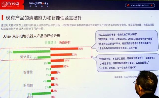 据了解,扫地机器人自 2016 年起在中国市场的需求快速增长,通过数据结合研究分析发现,目前中国消费者对家用服务型机器人,尤其是扫地机器人品类的主要痛点在于以下几个方面:29% 的消费者认为清洁能力及效果差强人意,22% 的消费者认为产品离“智能”要求相差甚远,另外还有 14% 的消费者声称产品的“耐用性”也没有达到他们的期望。