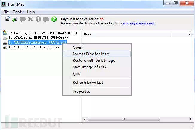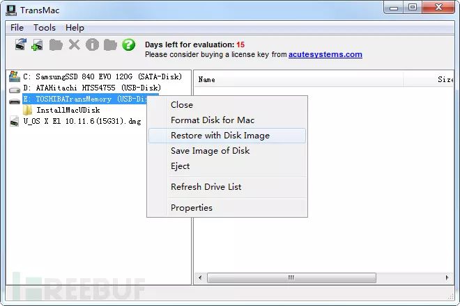 之前我们在Windows下写入Win镜像使用Win32diskimager,或者UltraISO,现在我们要在Windows下写入MacOS的镜像系统,得采用TransMac这款软件。