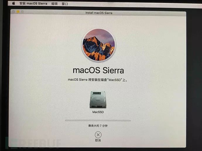 然后退出磁盘工具,选择安装macOS,开始进行系统的安装。这里没有什么需要注意的,只需要选择上面格式化好的磁盘就可以了。然后就是安装的过程了,如下图f所示。