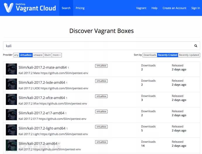 default: Downloading: https://vagrantcloud.com/Sliim/boxes/kali-2017.2-amd64/versions/1/providers/virtualbox.box