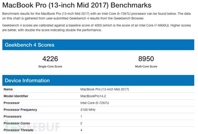 其性能相当于2017年中期的13寸MacBook Pro: