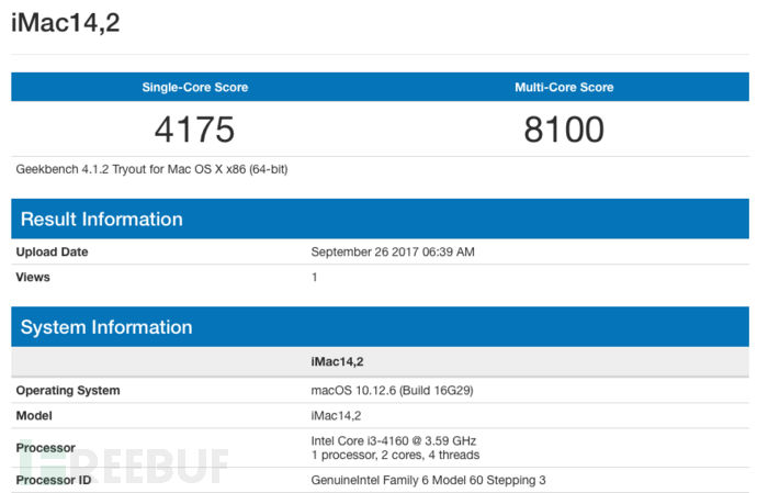 安装完成之后跑分试试,下载最新的Geekbench4来跑一下,最后测出来跑分如下: