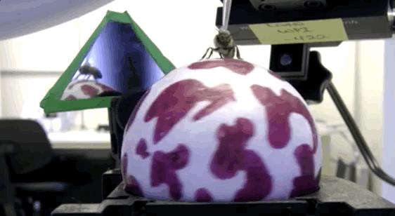 研究者将蜜蜂悬挂在一个追踪球上,实时记录它们的行走动作,并将这些动作发送到电脑上进行分析。