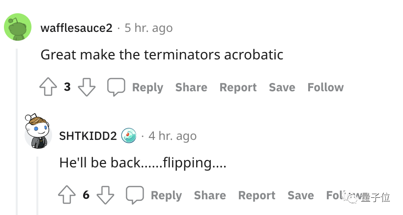 网友纷纷对这个灵活的Robot发出惊叹,有人甚至联想到终结者。(他是不是要回来了?…)