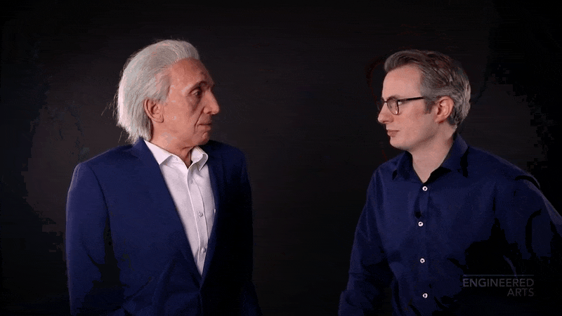 当然,Engineered Arts 也尝试过制作具有非常逼真人脸的机器人,比如下面这位 Owen,它是以 Mesmer 为骨架定制的仿真机器人。