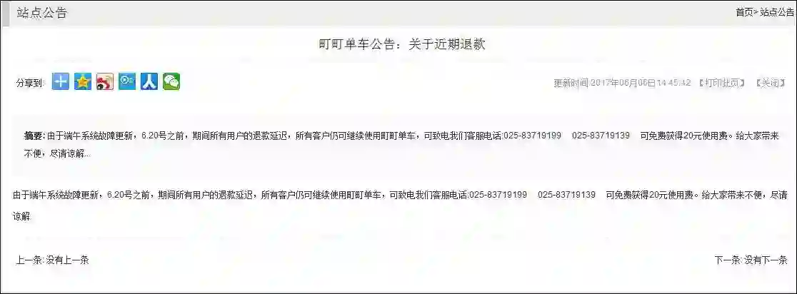 然而,据扬子晚报8月6日报道,早在3月份,就有网友陆续反映,町町单车押金退款迟迟不到账的问题。