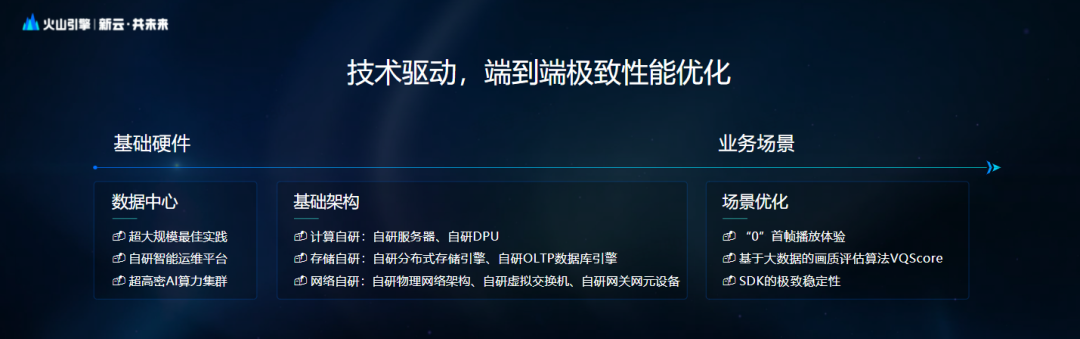 很多公司做云的时候都是新搭建一套体系,然后再把内部业务迁移过来,这也是主流的做法。但是火山引擎采取了另一条路,不同于腾讯云和阿里云,从根本上就要求统一,在内部采用一套技术设施部署,这套同源架构的做法,确保了火山引擎云服务的稳定和性能。