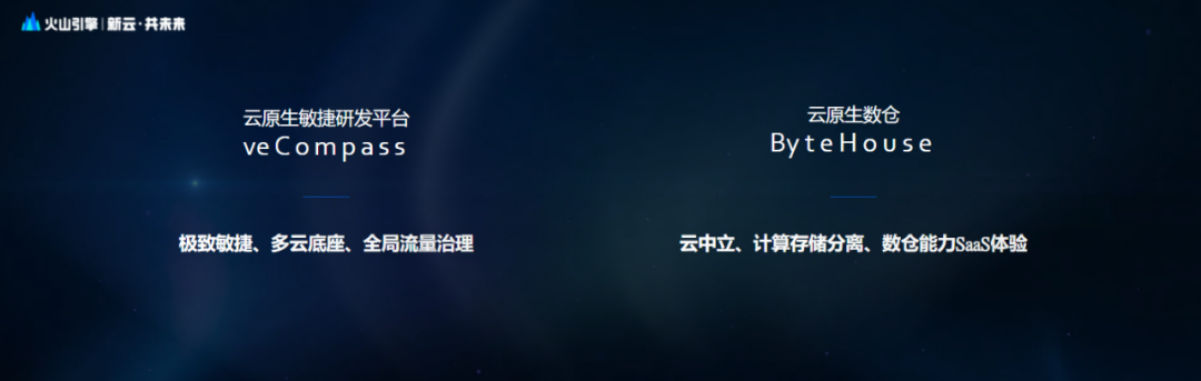 涉及有状态和无状态两种类型问题的优化,企业对存储引擎、底层网络互联互通的布局等情况都需要重新设计,也需要通过多余的管理平台来做好这件事情。基于这种情况,火山引擎除了发布了前文提到的 ByteHouse,还发布了 veCompass。未来,火山引擎计划开放更多工具服务,帮助客户提供多云咨询或者服务。