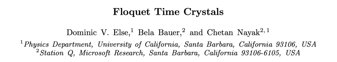 紧接着,在2016年,加利福尼亚大学圣巴巴拉分校和微软的研究人员根据pi spin-glass phase提出了Floquet「时间晶体」的存在。