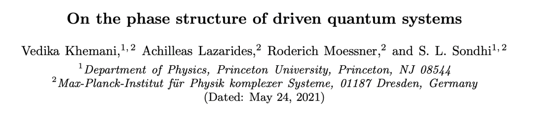 之后,在2015年的一篇论文中,普林斯顿大学和马克思·普朗克研究所的研究人员提出了一种新的物相结构(pi spin-glass phase),即第一个多体非平衡相。