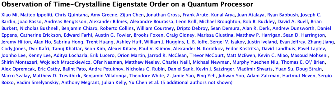 直到最近,谷歌与来自斯坦福大学、普林斯顿大学以及其他大学的物理学家联合发表了一份研究:「Observation of Time-Crystalline Eigenstate Order on a Quantum Processor」。