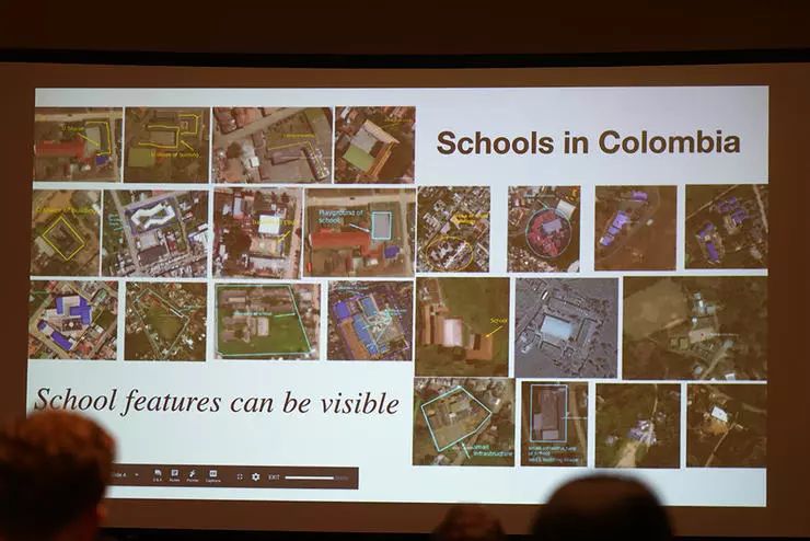 Computer Vision for Global Challenges Workshop (计算机视觉解决全球的挑战)现场,研究者利用计算机视觉技术和高分辨率卫星图像准确地分辨哥伦比亚各处散布的学校