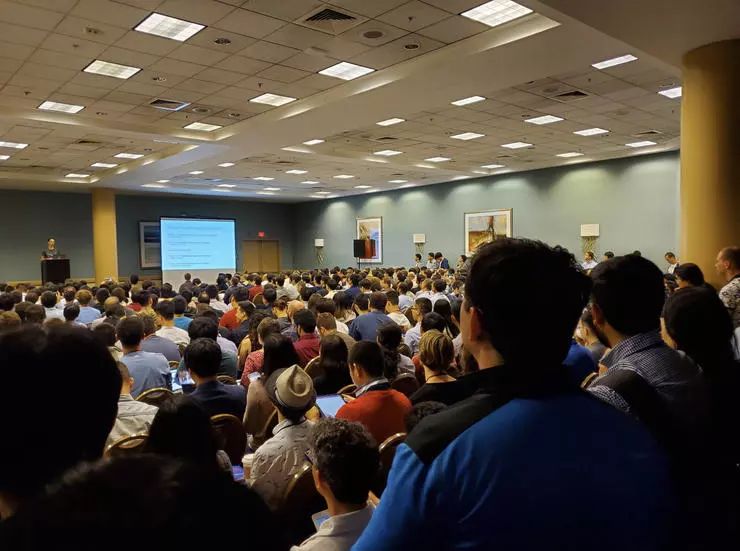 Ross Girshick 在台上演讲,整个屋子满满当当