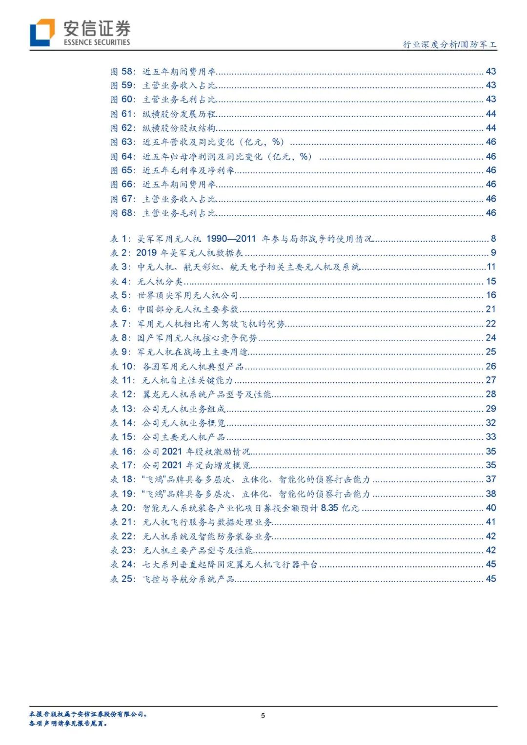 投资策略:在军用无人机方面,我们建议关注拥有先进无人机整机业务,以及盈利能力强、技术含量高的零部件上市公司,对应标的是中无人机、航天彩虹、航天电子等。民用工业及警用无人机虽然当前国内市场规模并不大,但用途广泛,未来发展空间巨大。我们建议关注未来有望研制出高水平、细分市场规模大的民用、警用无人机公司,主要标的是观典防务、纵横股份等。
