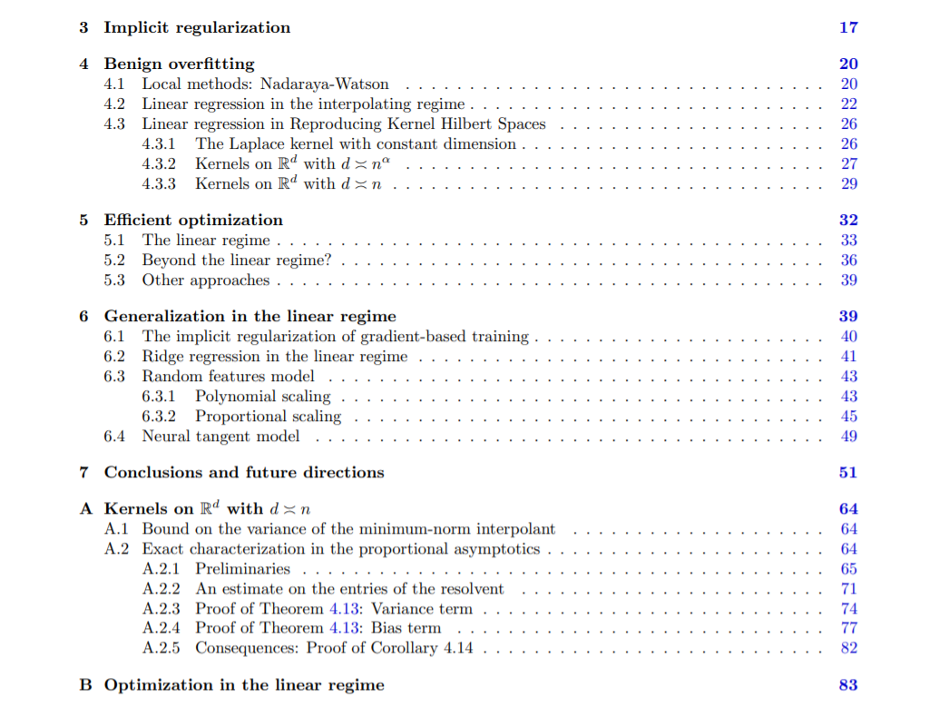 深度学习在实践中的显著成功,从理论的角度揭示了一些重大的惊喜。特别是,简单的梯度方法很容易找到非凸优化问题的接近最优的解决方案,尽管在没有任何明确的努力控制模型复杂性的情况下,这些方法提供了近乎完美的训练数据,这些方法显示了优秀的预测精度。我们推测这些现象背后有特定的原理: 过度参数化允许梯度方法找到插值解,这些方法隐含地施加正则化,过度参数化导致良性过拟合,也就是说,尽管过拟合训练数据,但仍能准确预测。在这篇文章中,我们调查了统计学习理论的最新进展,它提供了在更简单的设置中说明这些原则的例子。我们首先回顾经典的一致收敛结果以及为什么它们不能解释深度学习方法的行为方面。我们在简单的设置中给出隐式正则化的例子,在这些例子中,梯度方法可以得到完美匹配训练数据的最小范数函数。然后我们回顾显示良性过拟合的预测方法,关注二次损失的回归问题。对于这些方法,我们可以将预测规则分解为一个用于预测的简单组件和一个用于过拟合的尖状组件,但在良好的设置下,不会损害预测精度。我们特别关注神经网络的线性区域,其中网络可以用一个线性模型来近似。在这种情况下,我们证明了梯度流的成功,并考虑了双层网络的良性过拟合,给出了精确的渐近分析,精确地证明了过参数化的影响。最后,我们强调了在将这些见解扩展到现实的深度学习设置中出现的关键挑战。