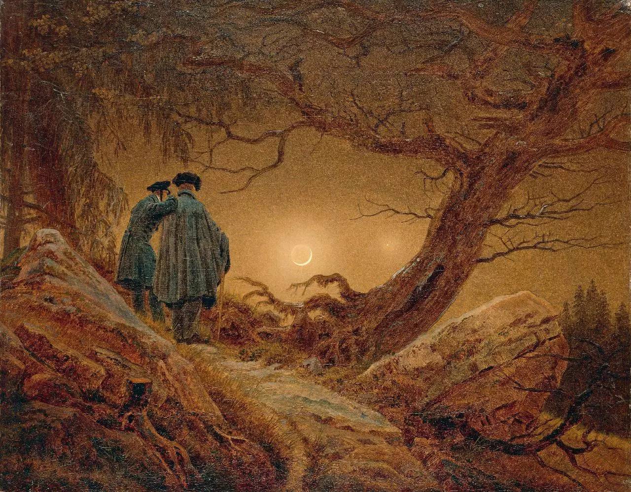 德国浪漫主义画家卡斯帕尔·大卫·弗里德里希作品《望月的两个男人》