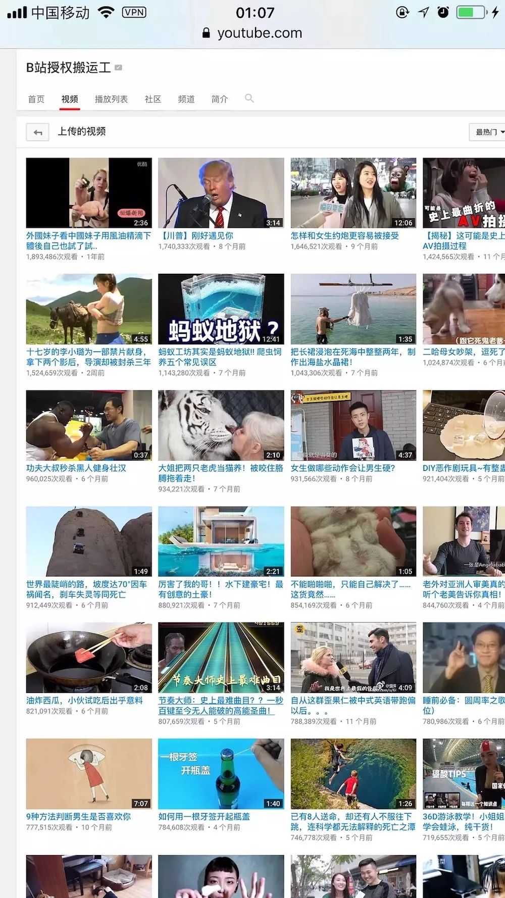 有个有意思的故事,有一位 B 站用户在 YouTube 创建了一个叫「B 站搬运工」的帐号,两年时间里,他把 B 站上 2000 多条原创的热门视频搬运到 YouTube,获得了超过 10 亿的播放量,有人据此计算,这个搬运工帐号可能获得了数百万人民币的收入。