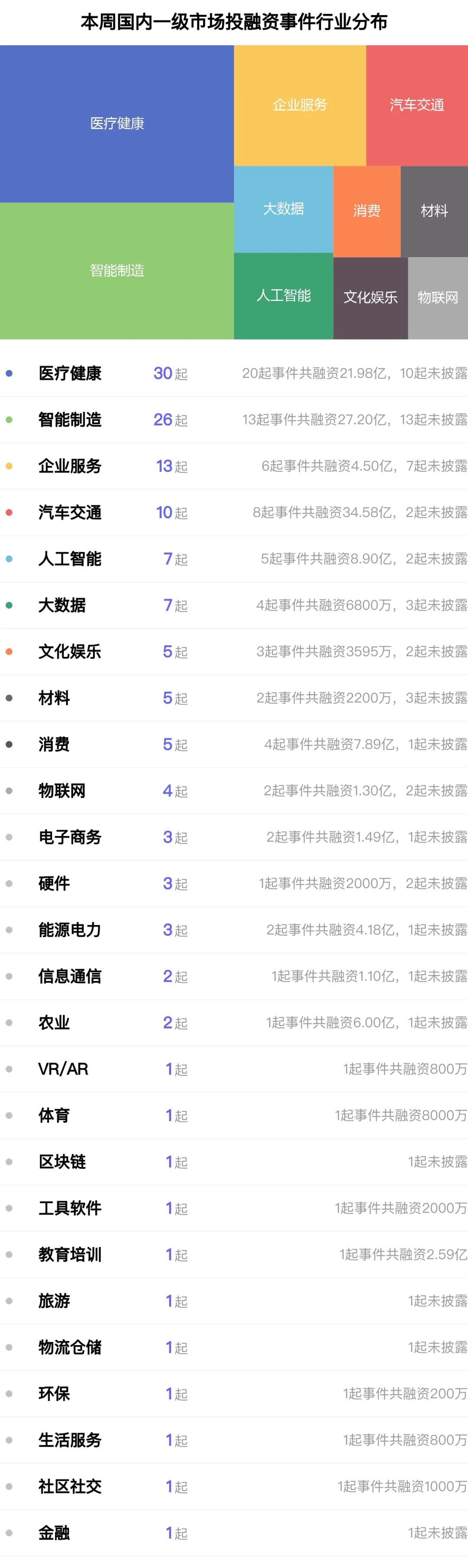 本周医疗健康、智能制造、企业服务领域融资最活跃
