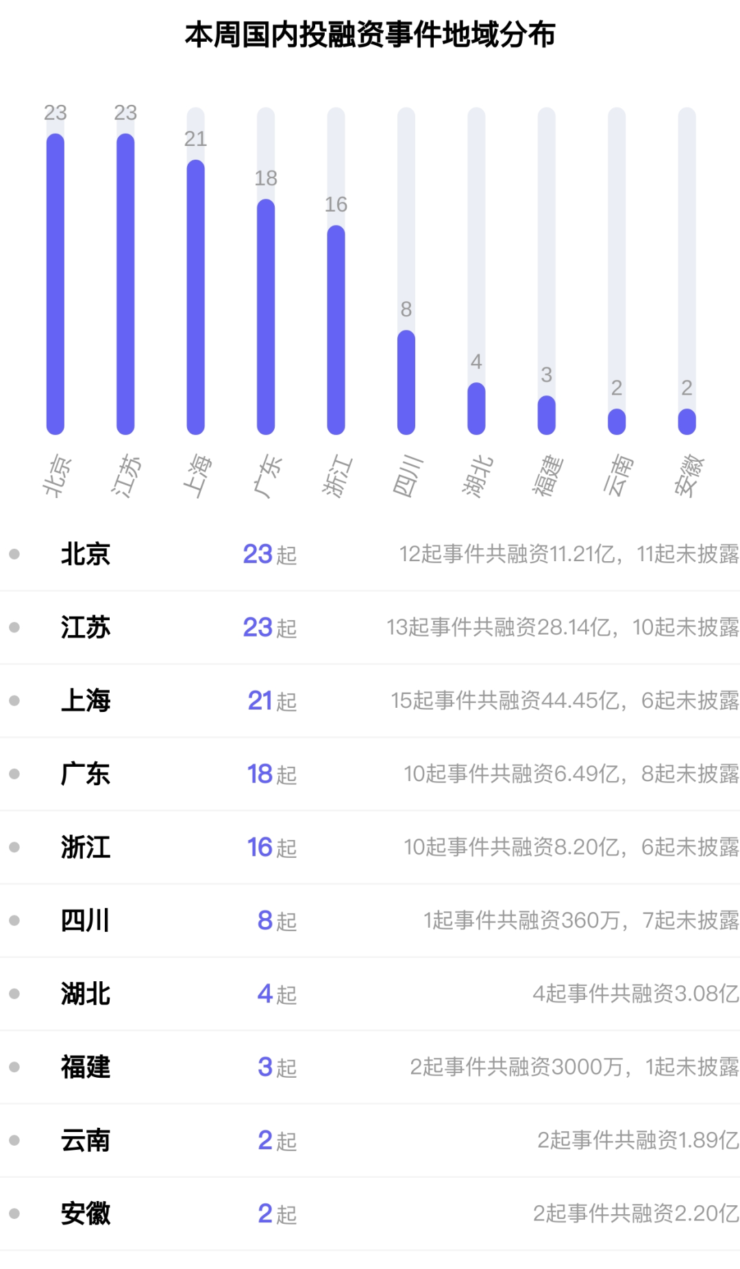 本周国内投融资事件地域分布