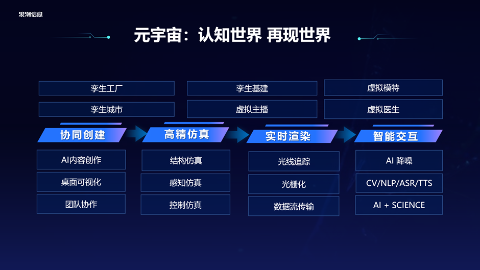 一方面是提供算力基础设施、软硬件一体化基础设施,来支撑元宇宙发展。另一方面AI技术结合元宇宙应用和场景,这是浪潮接下来重点关注并且推进的工作。