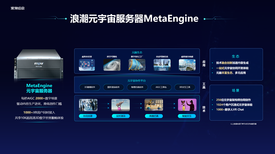 刘军表示,浪潮推出的元宇宙服务器MetaEngine,就是要打造支撑元宇宙的软硬一体化算力基础设施。