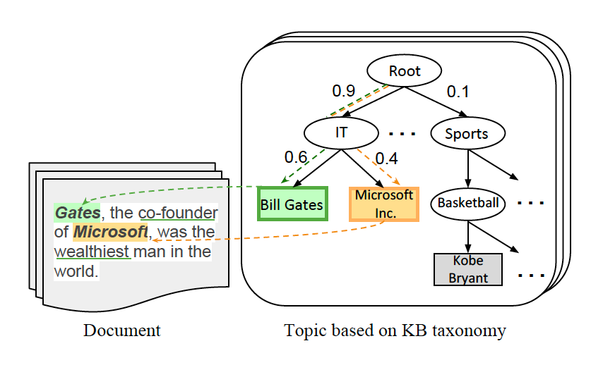 文章3.1节描述了如何利用抽取到的主题关键词去对应到一组合适的concept,主要利用的还是主题关键词上下文与concept的条件概率推理。