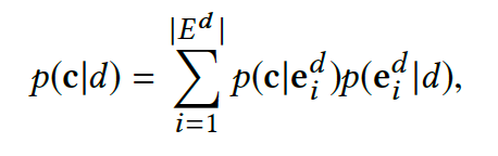 为了估计特定文档d的p(cj|d),计算每个概念分配给文档d中单词的次数,然后再次规范化和平滑计算以获得p(cj|d)。