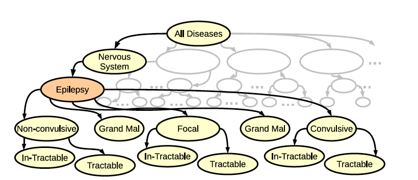 例如上图所示,“癫痫”是一个很好的概念词,可以概括出子类癫痫。