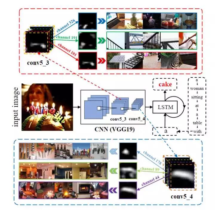 比如图中的例子,当我想预测 cake 这个单词时,channel-wise attention 就会给含有蛋糕、火焰、灯光和蜡烛形状物体的 feature map 分配更大的权重。