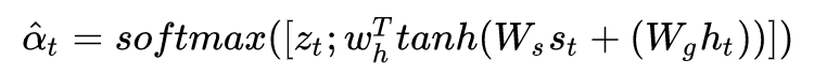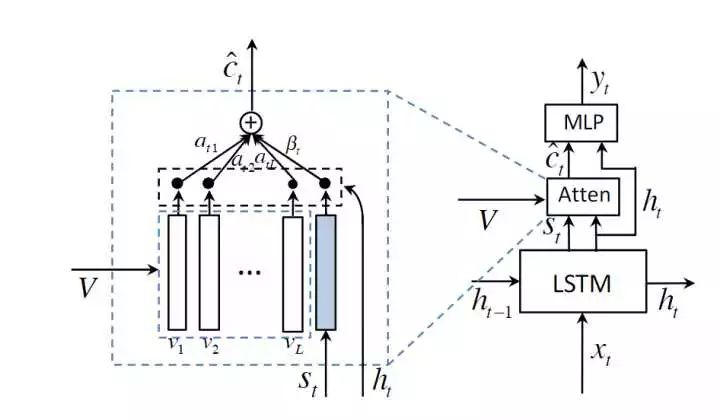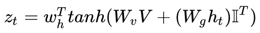这里表示 visual attention,总的 attention 结果由 visual sentinel 和 visual attention 共同决定。