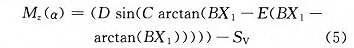 荷兰学者 Pacejka 提出的魔术公式模型是用特殊正弦函数建立的轮胎纵向力、侧向力和回正力矩模型。基于魔术公式轮胎回正力矩的非线性表达式可以由下式得到: