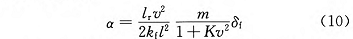 根据车辆二自由度模型 [15],得到横摆角速度 ω 与转向轮转角在稳态时的对应关系为: