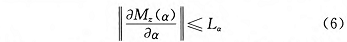从图 2 中可以看出 M_z(α) 和 ∂M_z(α)/ ∂α 在定义域内是连续的,那么 M_z(α) 满足局部利普希茨条件: