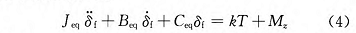 式中:J_eq 表示转向系统等效转动惯量,J_eq = J_fm + k^2*J_sm ;B_eq 表示转向系统等效转动阻尼,B_eq = B_fm + k^2*B_sm ;C_eq 表示转向系统等效转动刚度,C_eq = C_fm + k^2*C_sm