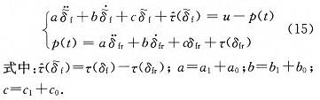 式中:a_0,b_0,c_0 分别表示转向系统等效转动惯量、等效转动阻尼和等效转动刚度的测量误差,认为误差有界,|| a_0 || ≤ Δa_0,|| b_0 || ≤ Δb_0,|| c_0 || ≤ Δc_0。