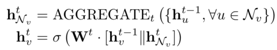 aggregator: 对于一个节点v, 通过聚合其周围节点的信息,学习其潜在表示h_v (state embedding)。
