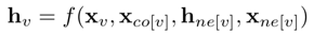 其中,x_v为节点v的features,x_co[v]为其周围边的features,h_ne[v]表示节点v周围邻居节点的state embedding,x_ne[v]表示周围节点的features。