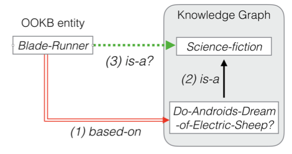 在训练过程中未被训练到的实体,无法得到其embedding表示,从而无法预测其与知识库中其他实体之间的关系。如下图中在测试期间新出现的实体“Blade-Runner”,或者说新出现的三元组“(Blade-Runner,based-on, Do-Androids-Dream-of-Electric-Sheep?)”(图中红线所示部分)。