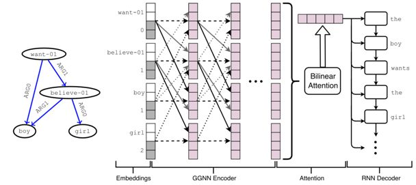 相关论文:<ACL-18> Beck D, Haffari G, Cohn T.Graph-to-sequence learning using gated graph neural networks.