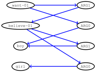 其中,AMR Graph为从句子的句法表示中抽象出来的语义表示语言,具体相似语义的句子有相同的AMR Graph。如下图左所示。