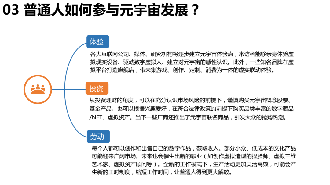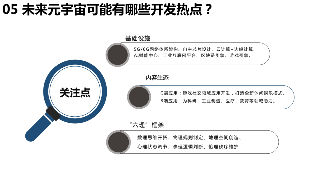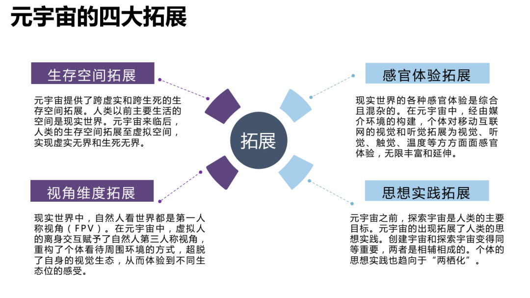 清华大学沈阳教授团队发布了《元宇宙发展研究报告2.0版》,总计205页。报告基于《元宇宙发展研究报告1.0版》,从元宇宙的缘起、概念与属性、技术与产业链、场景应用、风险点及治理、热点七问、远未来展望等七个部分对元宇宙发展进行了深入的研究与分析。
