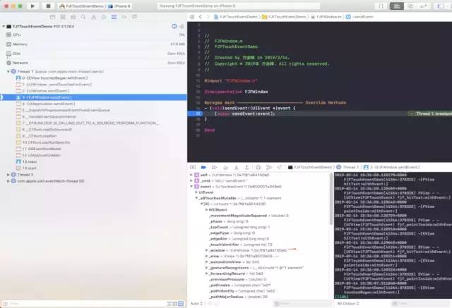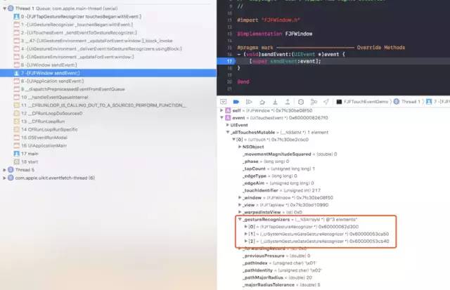 从日志我们可以看出,即便FJFTapGestureRecognizer识别了点击手势,UIApplication也依旧将事件发送给FJFTapView.
