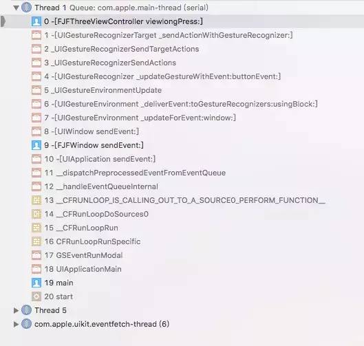 这里的调用逻辑其实跟单击手势识别器FJFTapGestureRecognizer相似,主要区别在于长按手势识别器FJFLongPressGestureRecognizer调用了两次。