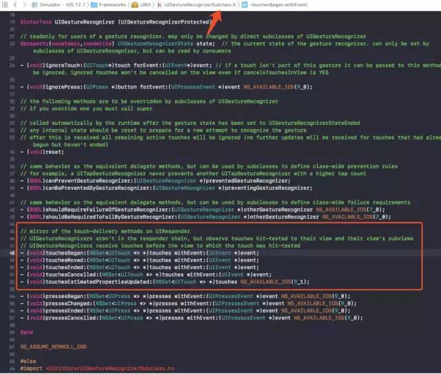 这4个方法和UIResponder的那4个方法几乎吻合,只不过UIControl只能接收单点触控,因此接收的参数是单个UITouch对象。这几个方法的职能也和UIResponder一致,用来跟踪触摸的开始、滑动、结束、取消。不过,UIControl本身也是UIResponder,因此同样有touches系列的4个方法。事实上,UIControl的 Tracking 系列方法是在touch 系列方法内部调用的。比如 beginTrackingWithTouch 是在 touchesBegan 方法内部调用的, 因此它虽然也是UIResponder,但touches 系列方法的默认实现和UIResponder本类还是有区别的。