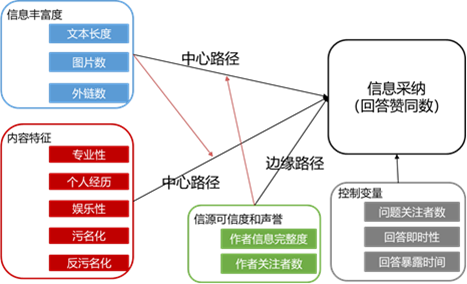 2. 基于两过程信息采纳模型,探究了大型水利水电工程网络舆论信息采纳机理,并用社交问答网站知乎上关于三峡工程的问答数据进行了实证。