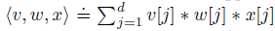 其中 v,w,x为3个d维向量,v[j], w[j], x[j]分别表示向量v,w,x的第j个分量