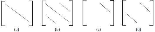 3. DistMult,ComplEx,CP和SimplE都可以看作双线性模型(需要把SimplE的头尾表示拼接作为一个实体的单一嵌入),这时他们关系表示的参数如下图: