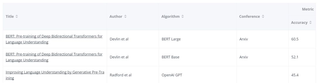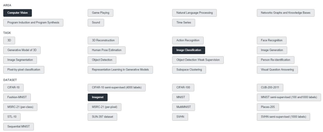 尽管目前已经有很多诸如 arxiv-sanity、GroundAI、Deep Learning Monitor、reddit、Medium 等等能帮助我们紧跟 AI 和 ML 领域最新发展的网站。作者认为目前我们尚未拥有易于查询的项目来检索最先进的、可量化的任务结果。遵循这个想法,作者的目标是建立这个工具,不仅对研究人员有用,对任何想要咨询或有助于推动该领域的人都有用。